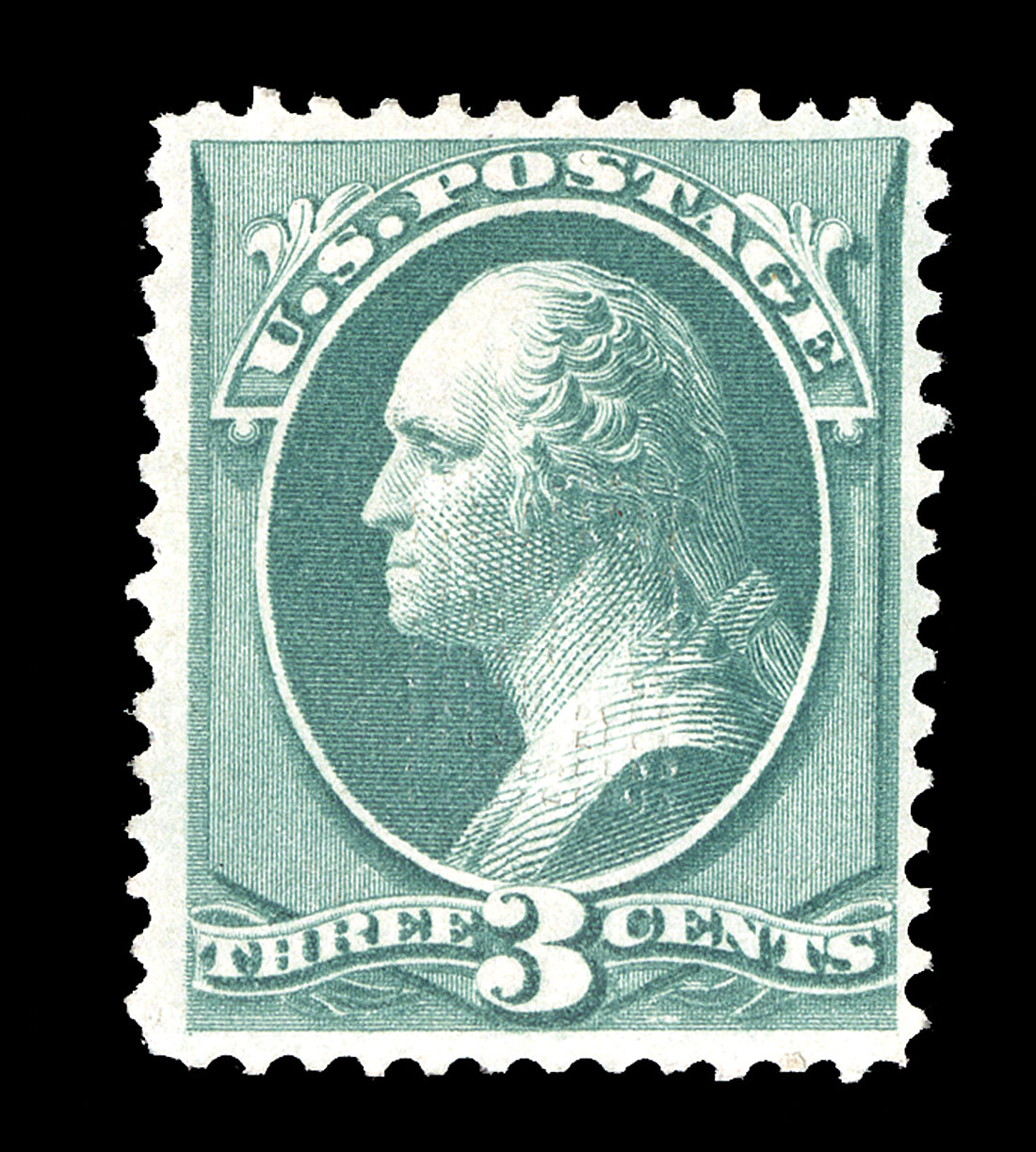 #158e, 3c Green, with "J" grill, an attractive and fresh mint example of this scarce experimental grill, well centered, deep luxuriant color, grill impression only slightly punctures the paper at points which is a characteristic of genuine examples, full o.g., l.h., very fine; these grills, even on this 3c value, are decidedly rare, much more so than the National Bank Note Co. grills; 1994 and 2014 PF certificates.