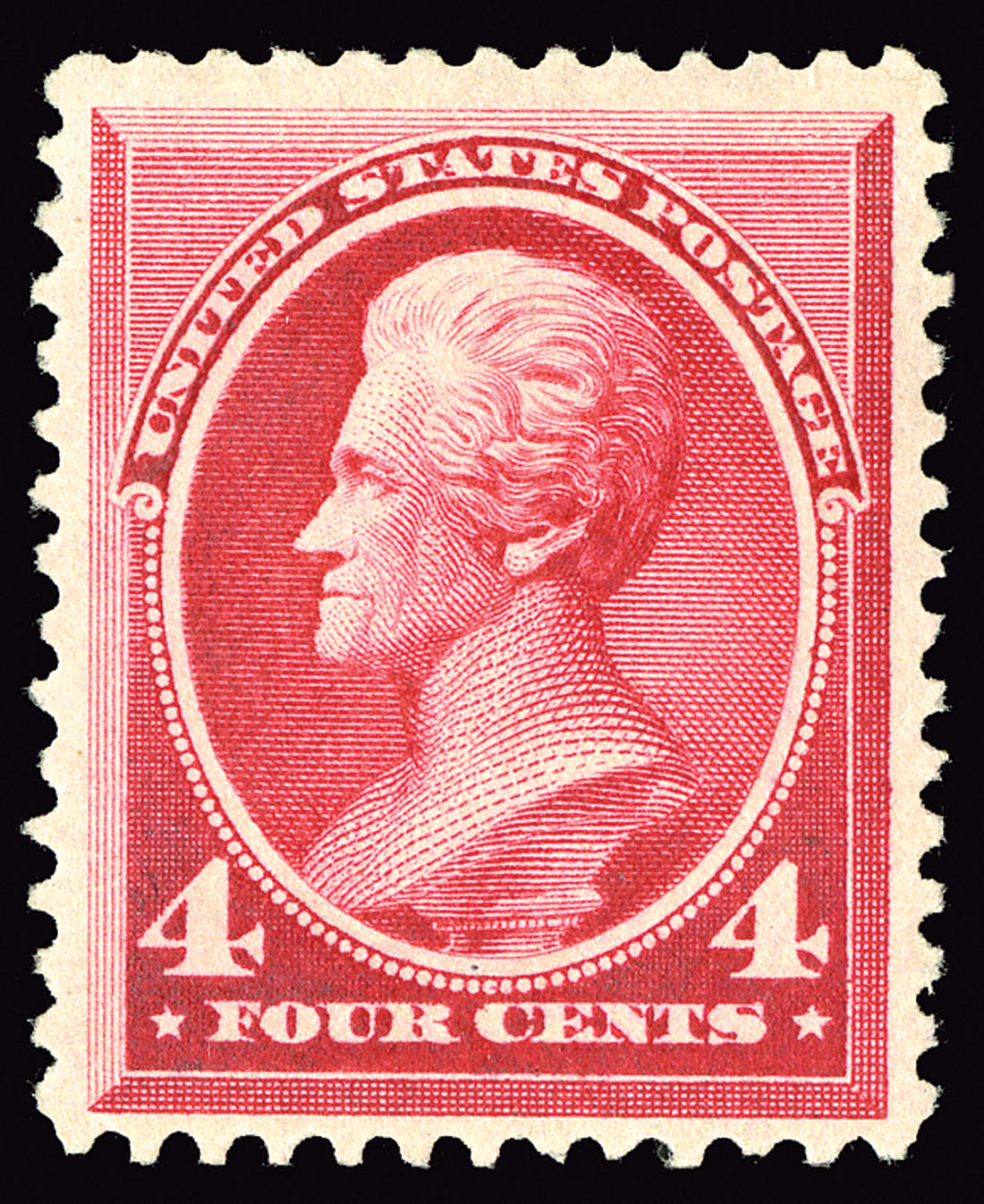 #215, 4c Carmine, well centered single, rich vibrant color and a well incised impression, o.g., lightly hinged, very fine.