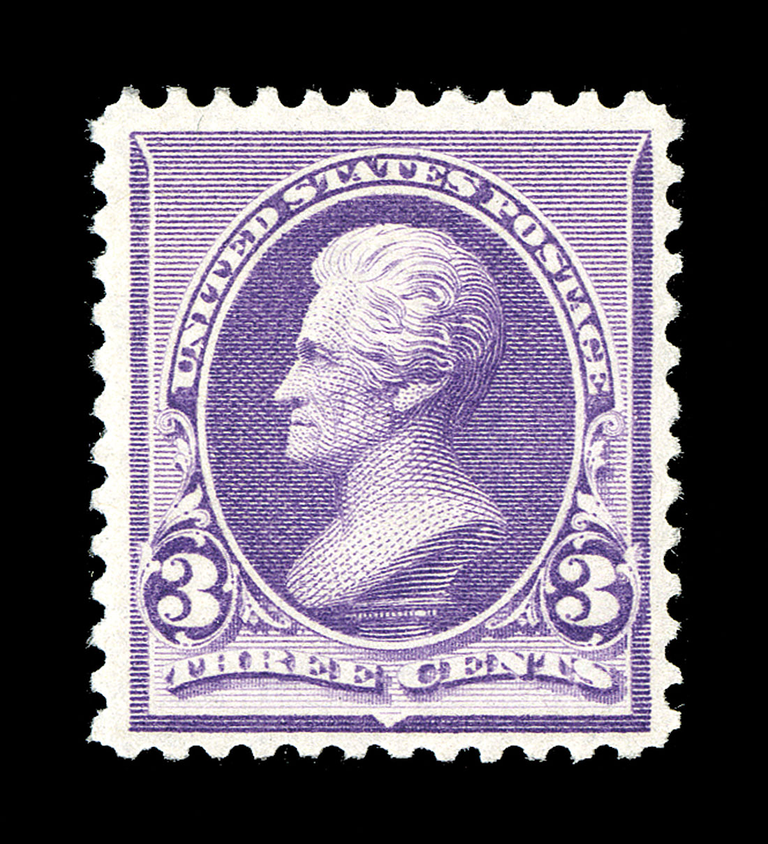#221, 3c Purple, nicely centered and margined, lovely rich color on fresh paper, o.g., n.h., very fine; 2014 PSE certificate (VF 80; SMQ $225.00).