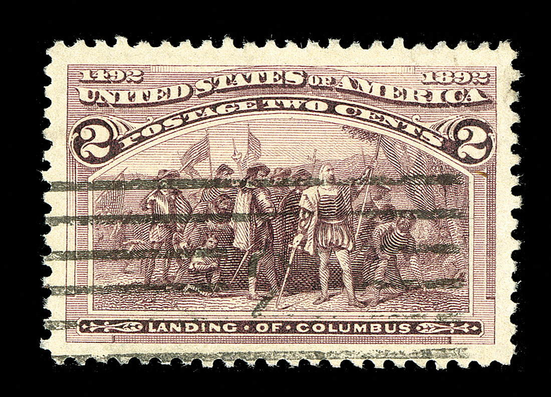 #231, 2c Columbian, gem used single that is exceedingly well centered within particularly large margins, plus its color is extraordinarily rich and its impression deeply etched on bright paper, neat portion of machine cancel, extremely fine jumbo; 2014 PSE certificate (Superb 98 Jumbo; SMQ $400.00 for 98).