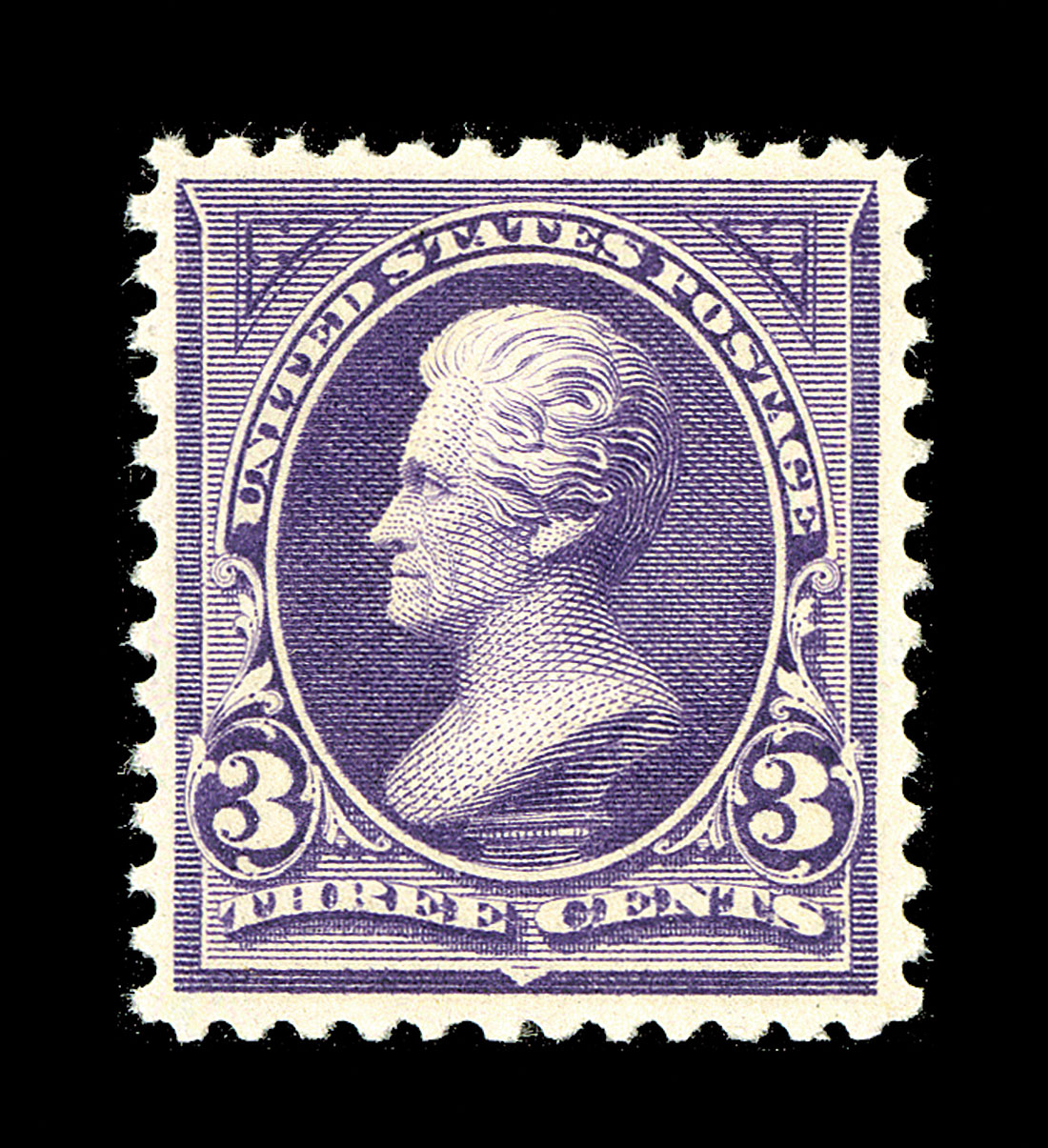 #253, 3c Purple, well centered within large margins, exceptionally fresh with deep rich color on immaculate white paper, o.g., n.h., extremely fine; 2013 PSE certificate for a block of four, this being the bottom right stamp.