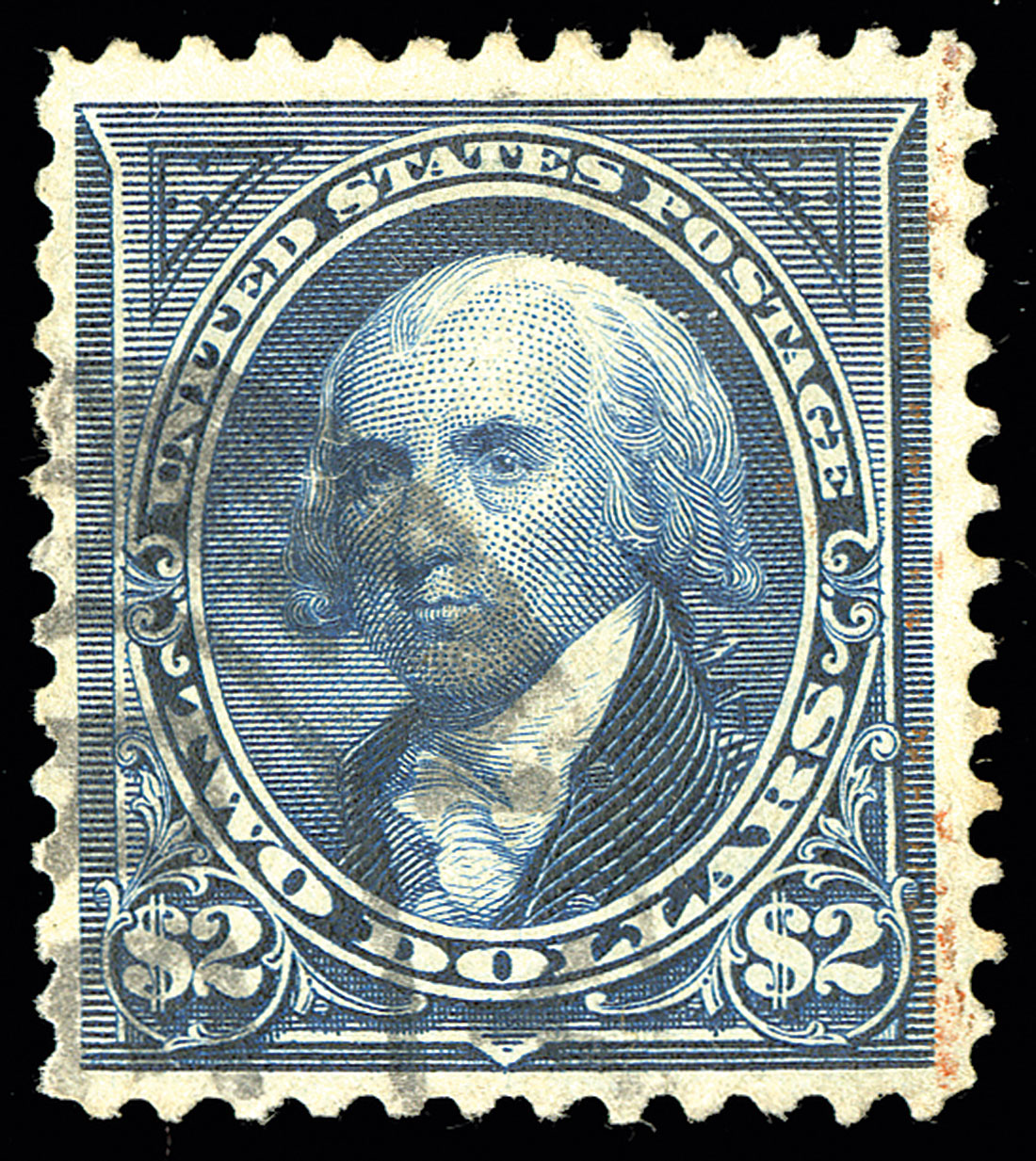 #277a, $2.00 Dark blue, nicely centered used single, deep luxuriant color on fresh paper, portion of double oval cancel with a trace of red cancel at right, very fine.