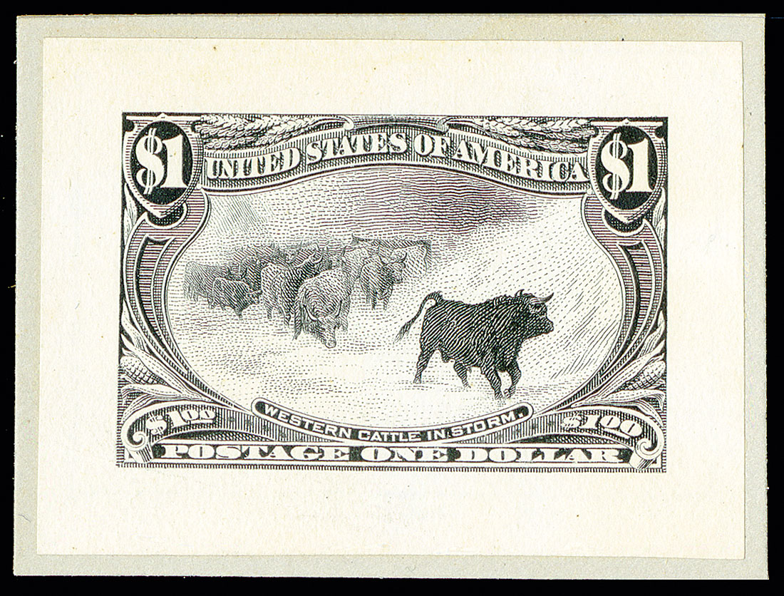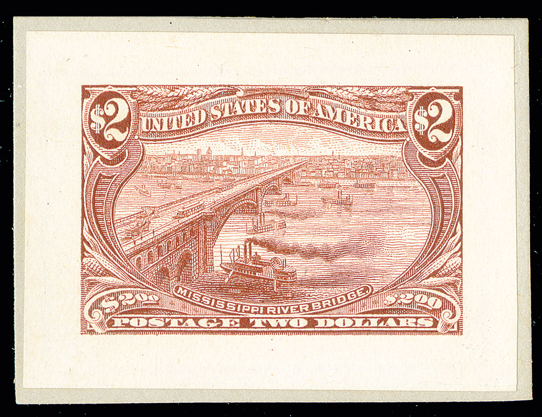 #285P2-293P2, 1c-$2.00 Trans-Mississippis, small die proofs on wove cplt., each neatly affixed to a small piece of the Roosevelt album pages, brilliant colors throughout, extremely fine and exceedingly choice; an especially attractive set of these scarce and popular proofs.