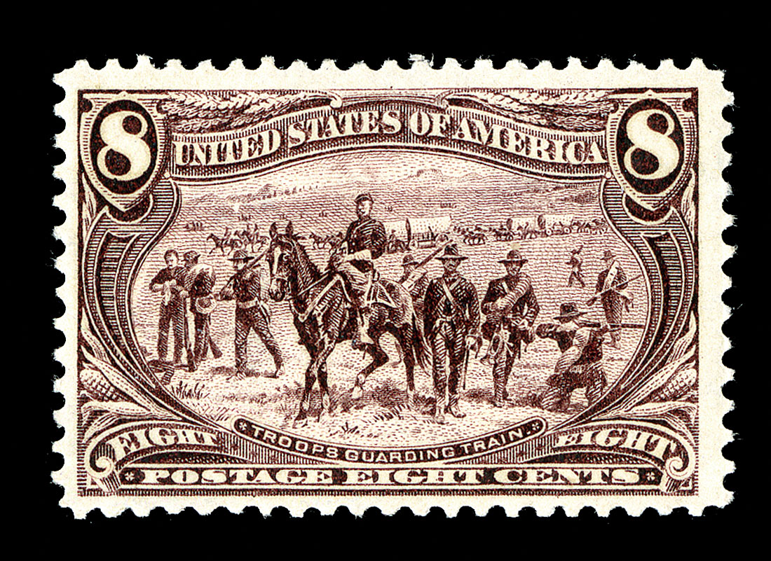 #289, 8c Trans-Mississippi, well centered within much larger margins than usually encountered on this difficult value, rich color, o.g., n.h., very fine; 2014 PF certificate.