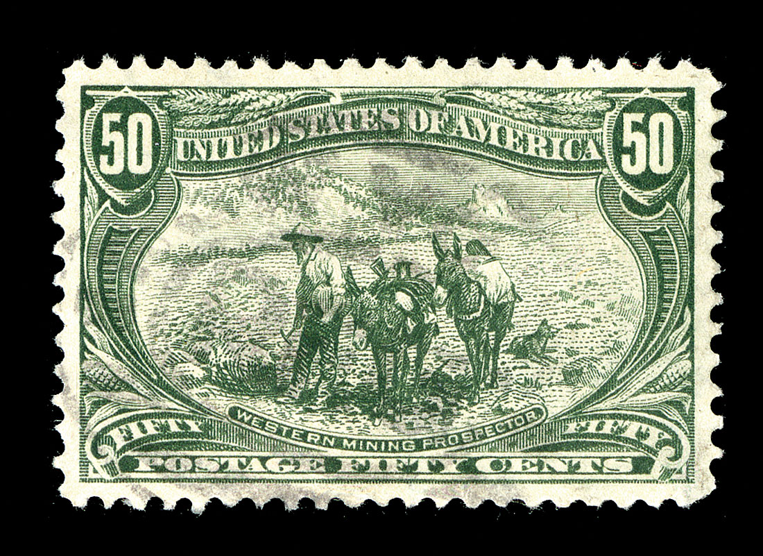 #291, 50c Trans-Mississippi, impressive used example, featuring large balanced margins all around, bright luxuriant color and a sharp impression, very lightly cancelled, extremely fine and and exceedingly choice; 2014 PF certificates.