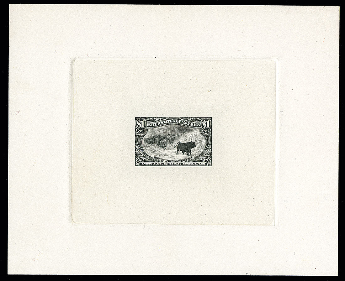 #292P1, $1.00 Trans-Mississippi, large die proof on India, die sunk on full size card (5¾"x4¾"), beautifully fresh an extremely fine; a choice proof of this popular value.