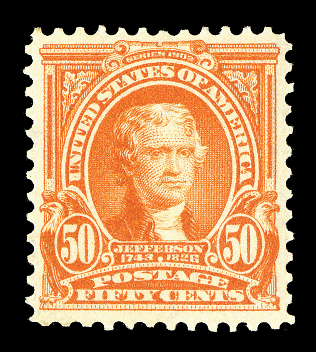#310, 50c Orange, sumptuously rich color in an especially deep shade, crisp impression on bright paper, well centered, o.g., barest trace of hinging, very fine; 2014 PSE certificate (VF-80; $400.00).