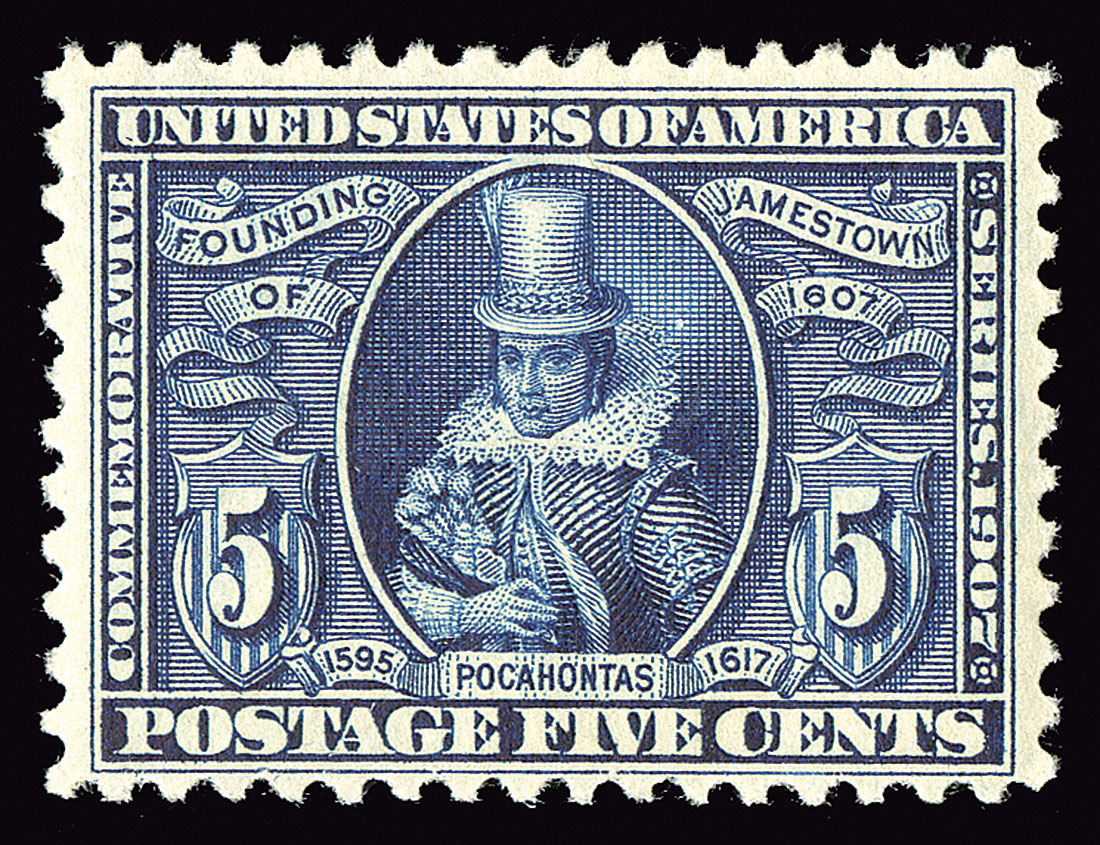 #330, 5c Jamestown, well centered and margined for this difficult stamp, deep rich color and impression, o.g., n.h., very fine; 1999 PF certificate.
