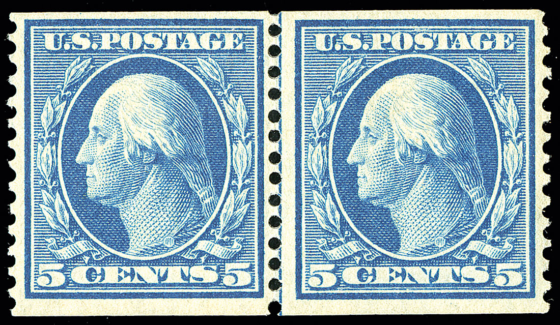 #355, 5c Blue coil, perf. 12 vert., guide line pair, nicely centered, bright color, o.g., lightly hinged, very fine; 2004 PF certificate.