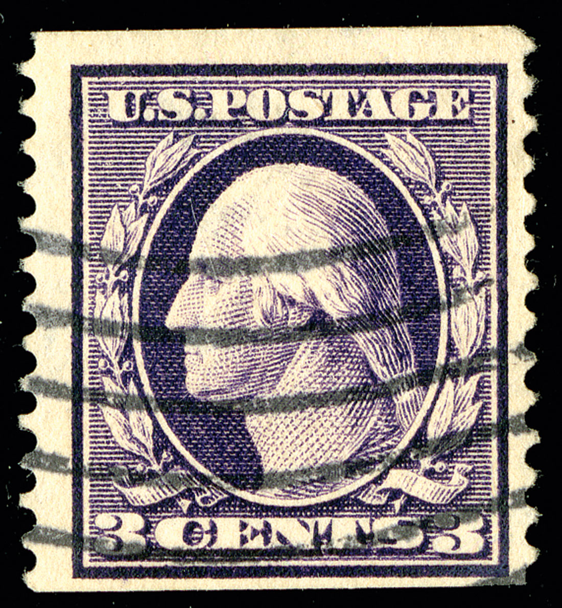 #389, 3c Deep violet, Ty. I, "Orangeburg Coil," perf. 12 vert., deep color and impression, typical but attractive fine centering, neat wavy line cancel of Orangeburg, N.Y., faint diagonal crease at top right that is barely discernable (actually quite trivial considering that the vast majority of the few known examples are far more faulty), a fine example for which the Scott catalog value is intended to reflect; a most presentable and collectable copy of this rare coil that was issued specifically for use by the Bell Pharmaceutical Co. to mail their samples to doctors; clear 1973 APS certificate and 2014 PF certificate.