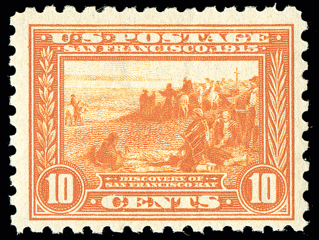 #404, 10c Panama-Pacific, perf. 10, well centered within large margins, vibrant color, o.g., n.h., very fine; 2007 PF certificate for a block of four, this being the top right stamp.