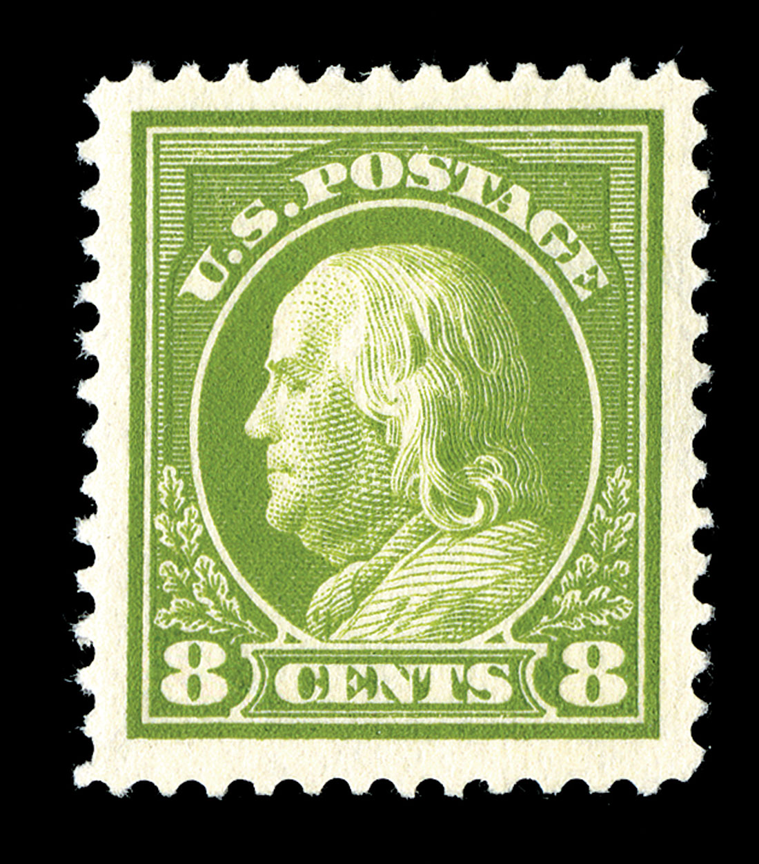 #414, 8c Pale olive green, uncharacteristically well centered within extra-large margins, deep intense color and impression, o.g., n.h., extremely fine; 2014 PSE certificate (XF 90 Jumbo; SMQ $185.00 for 90 and $500.00 for 95).