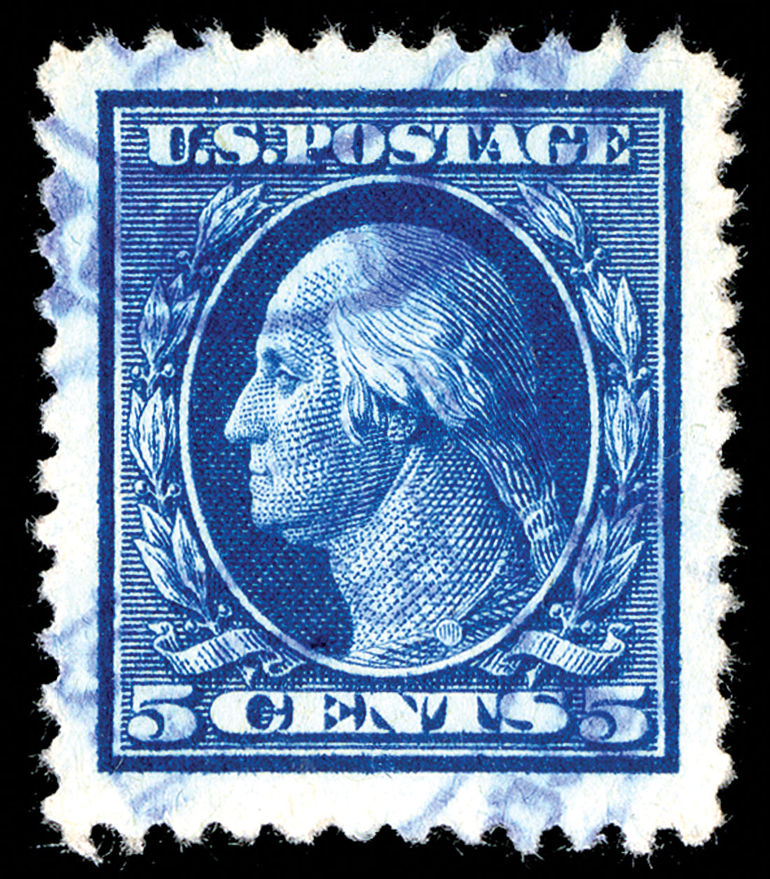 #504, 5c Blue, stunning used jumbo single, perfectly centered within immense margins, rich vibrant color and a deeply etched impression on fresh paper, in addition this amazing stamp possesses a rarely seen blue town cancel, extremely fine gem; 2014 PF certificate.