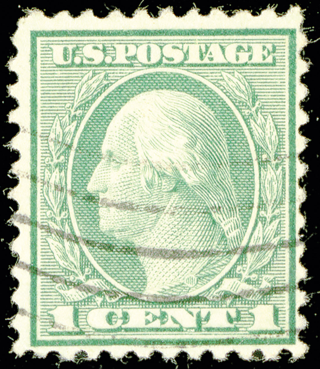 #544, 1c Green coil waste, perf. 11, an attractive used example of this rare and difficult stamp, quite well centered when compared to most, deep luxuriant color, neat portion of machine cancel, fine; this stamp is priced in Scott for fine examples as few grade higher; 1992 PF certificate.