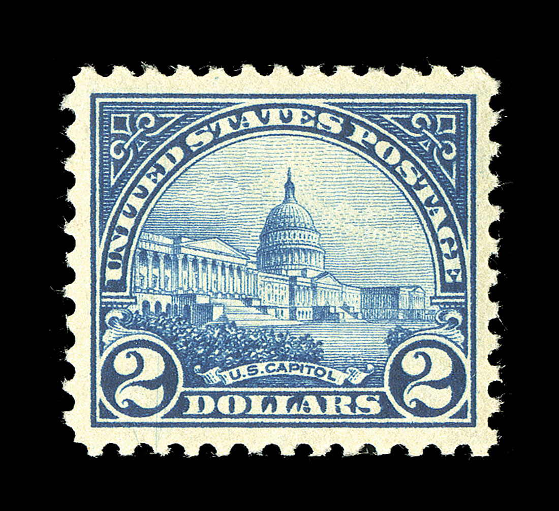 #572, $2.00 Deep blue, unusually well centered, deep rich color, o.g., n.h., extremely fine; 2007 PSE certificate (XF 90; SMQ $195.00).