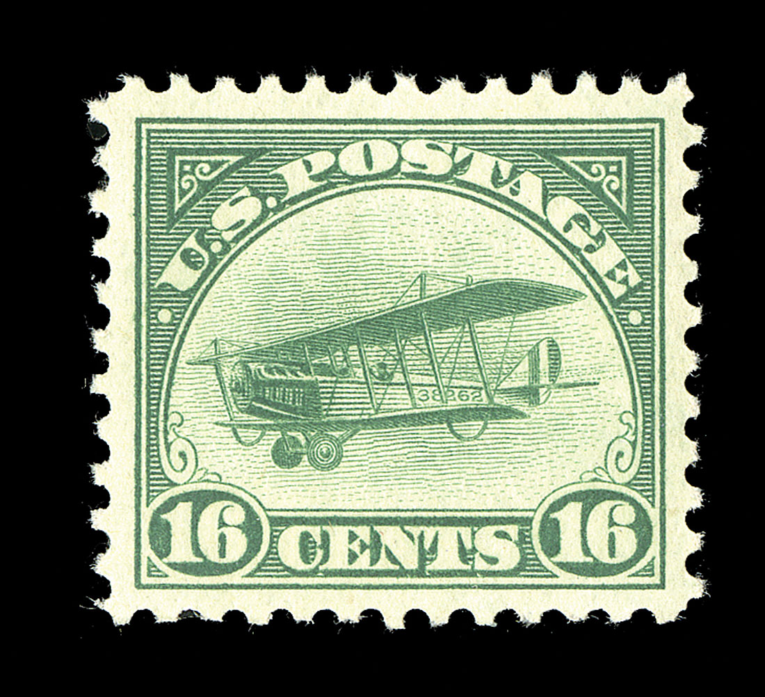 #C2, 16c Green, excellent centering within particularly wide margins, deep rich color and a well incised impression, o.g., n.h., extremely fine; 2014 PSE certificate (VF-XF 85; SMQ $170.00).