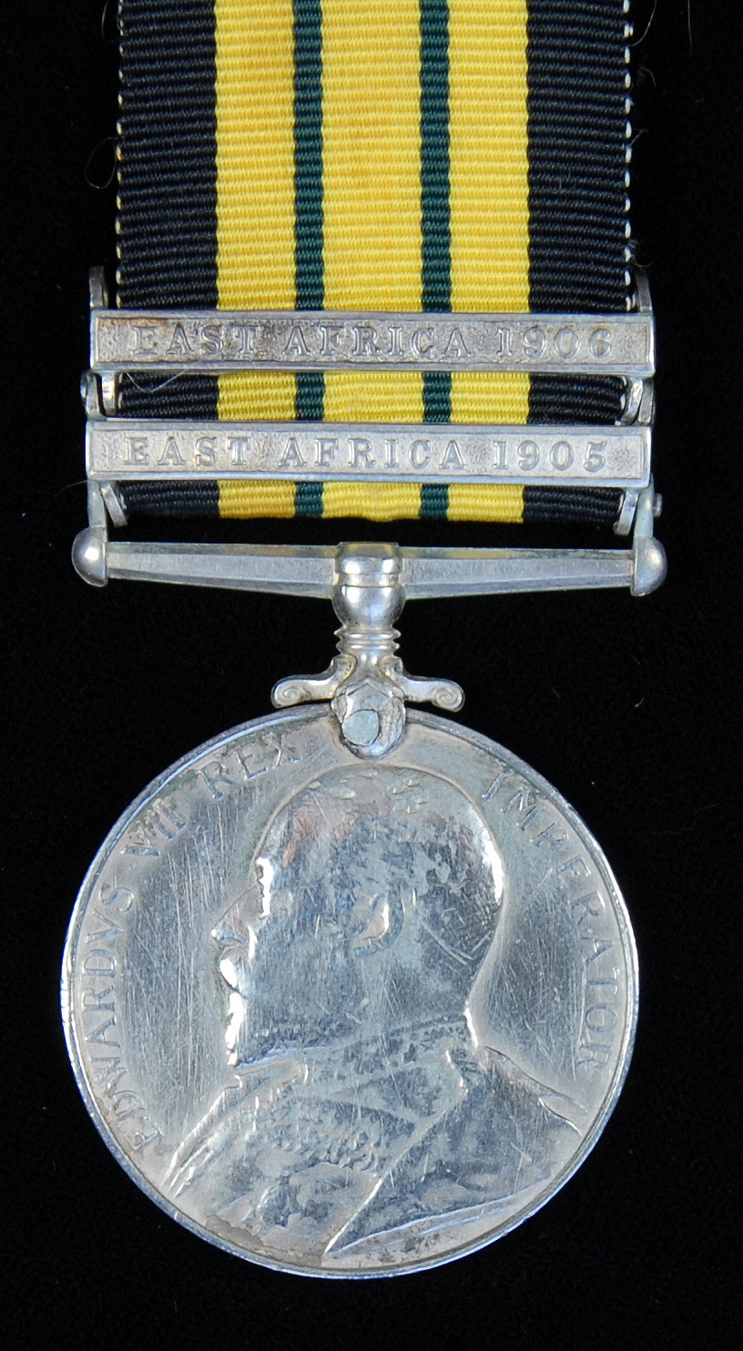 Africa General Service 1902-56, E.VII.R., two clasps, East Africa 1905, East Africa 1906 (471 Serjt: Muzari Matambatoo. 3/K.A.R.), suspension claw crudely re-pinned, lugs soldered between clasps, fine