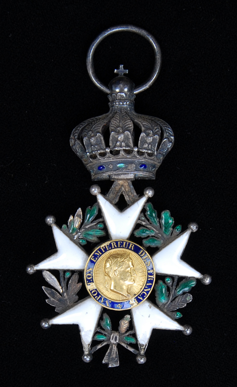 France, Second Empire, Legion of Honour, Chevalier´s breast Badge, 66mm including crown suspension x 42mm, silver, gold, and enamel, poincon mark on obverse, enamel damage to points of badge and motto, good fine