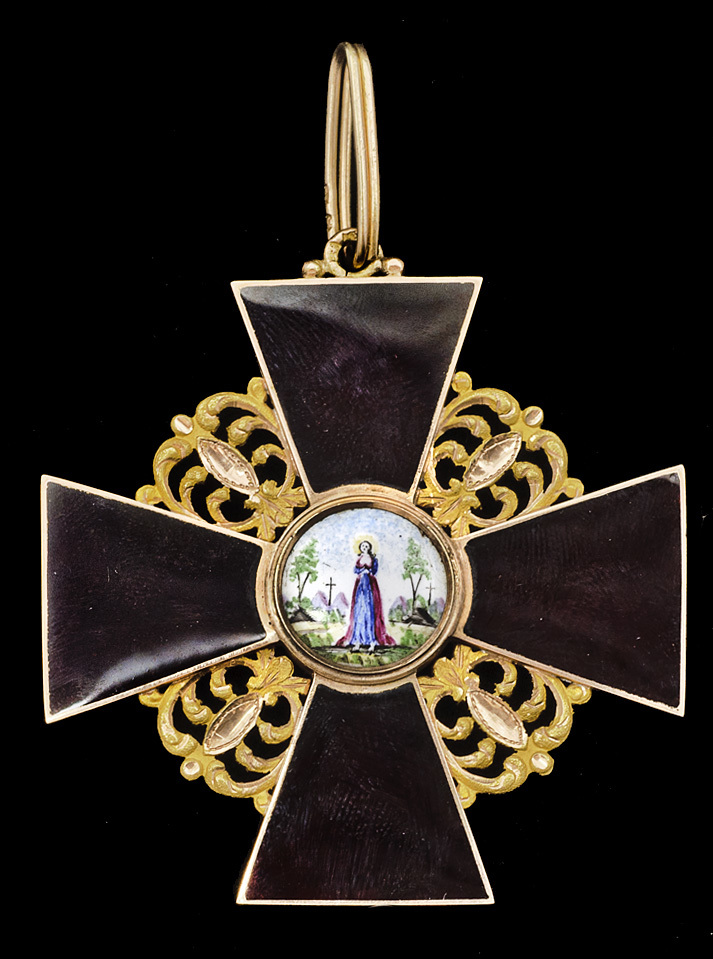 Russia, Imperial, Order of St. Anne, an early 'slim' First Class sash Badge, gold (56 zolotniki) and dark red enamel, manufacturer´s mark 'L.W.', gold mark and 1865-1896 assay office mark on suspension ring and on loop, extremely fine
