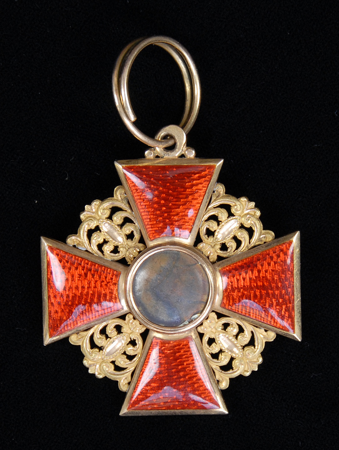 Russia, Imperial, Order of St. Anne, Second Class neck Badge, gold and enamel, large court stamp on reverse, no maker's mark, obverse central medallion missing, otherwise extremely fine