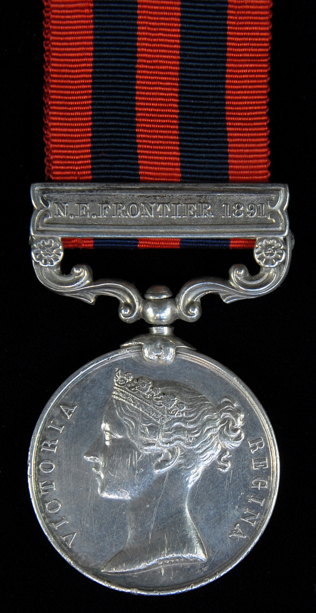 (x) India General Service 1854-95, one clasp, N.E. Frontier 1891 (21578 Act: Bombardier J. Midwinter No. 2 Mn. By. R.A.), minor abrasion marks, nearly very fine