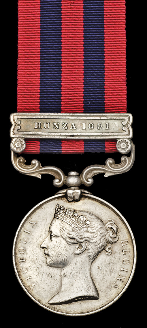 (x) India General Service 1854-95, one clasp, Hunza 1891 (Naick Ummon Khan 24th. Regt. N.I.), claw tightened, nearly very fine
