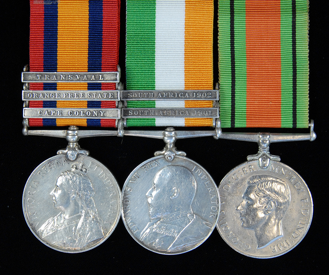 Queen's South Africa 1899-1902, three clasps, Cape Colony, Orange Free State, Transvaal (6651 Pte. J. Wilkinson. A. & S. Highrs:); King's South Africa 1901-02, two clasps (6651 Pte. J. Wilkinson. A. and S. Highrs:); Defence Medal, edge bruise to first, nearly very fine or better, with Oxfordshire Territorial Army Association letter for the Defence Medal