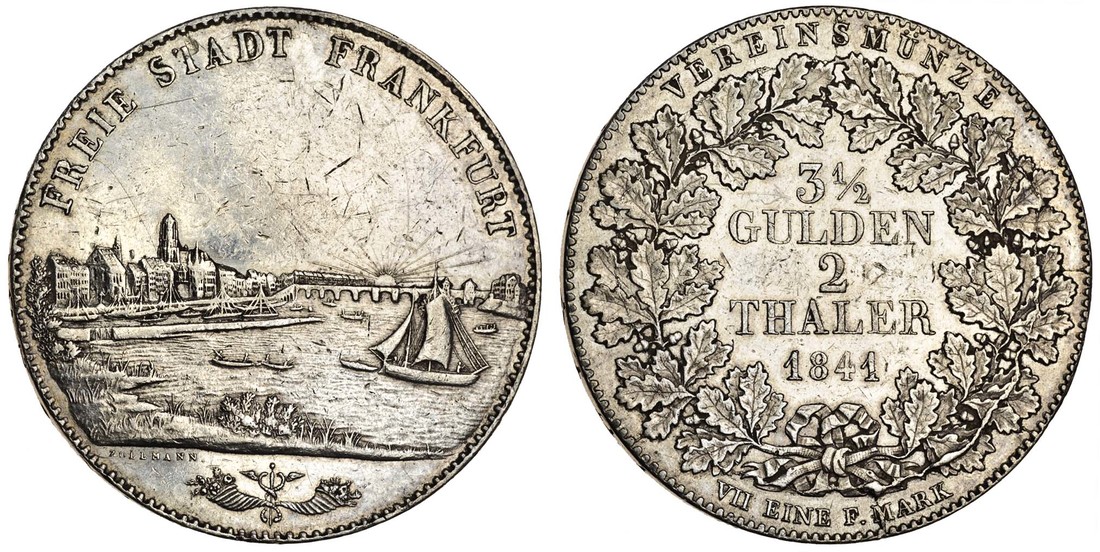 (x) Germany, Frankfurt, Double-Taler, 1841, city view, rev. value within wreath, edge inscribed (KM.326), scuffed, hairlines, good very fine