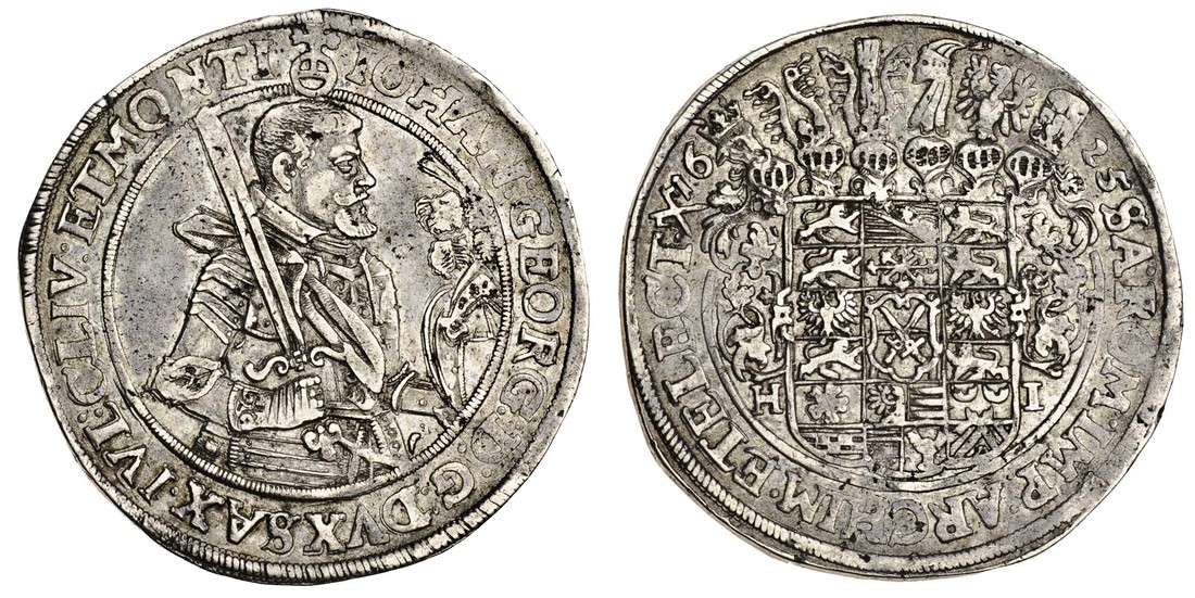 (x) Germany, Saxony, Johan George I (1615-56), Taler, 1625, armoured bust right, holding sword and helmet, rev. arms, h i at sides (Dav.7601; KM.132), trace of mount at 12 o'clock, very fine