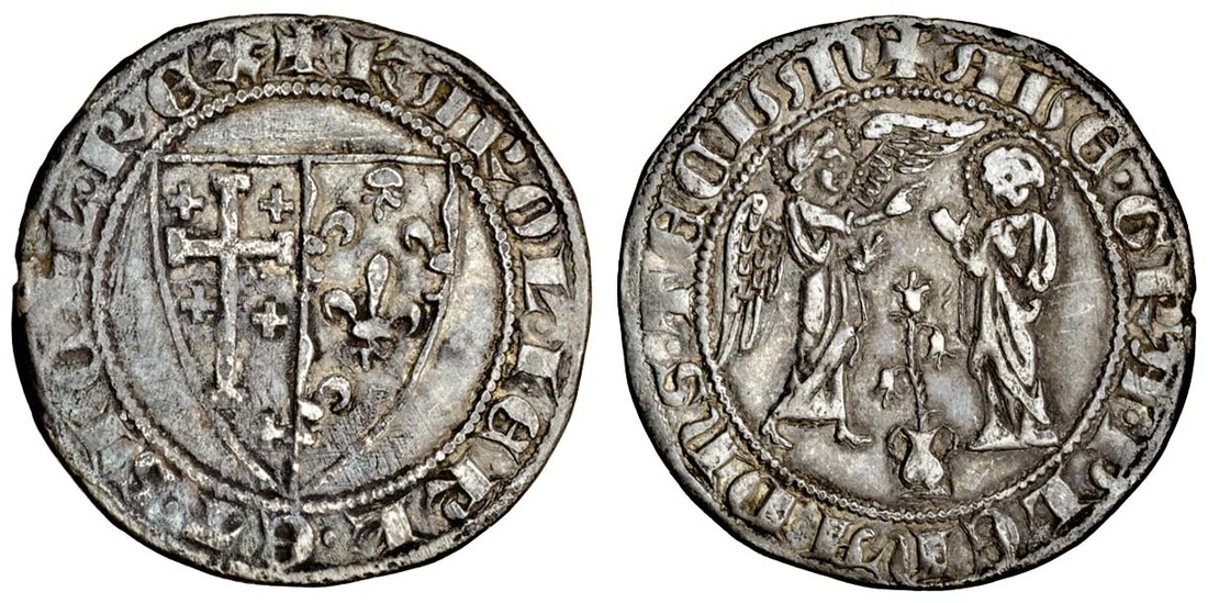 Italy, Naples, Carlo I d'Angio (1266-85), Saluto d'argento, 3.15g, shield, rev. Annunciation scene (MIR 20-R), about very fine