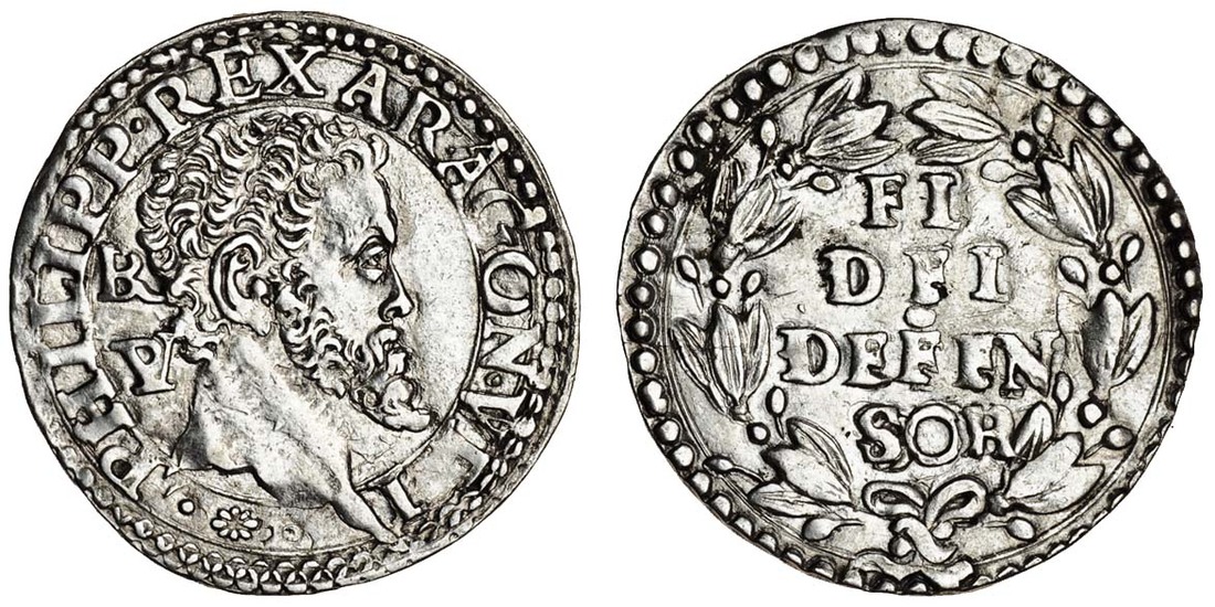 Italy, Naples, Filippo II (1554-98), Carlino, 2.96g, head right, monograms of ibr and vp behind, rev. fi dei defen sor in wreath (MIR 180/1), good very fine