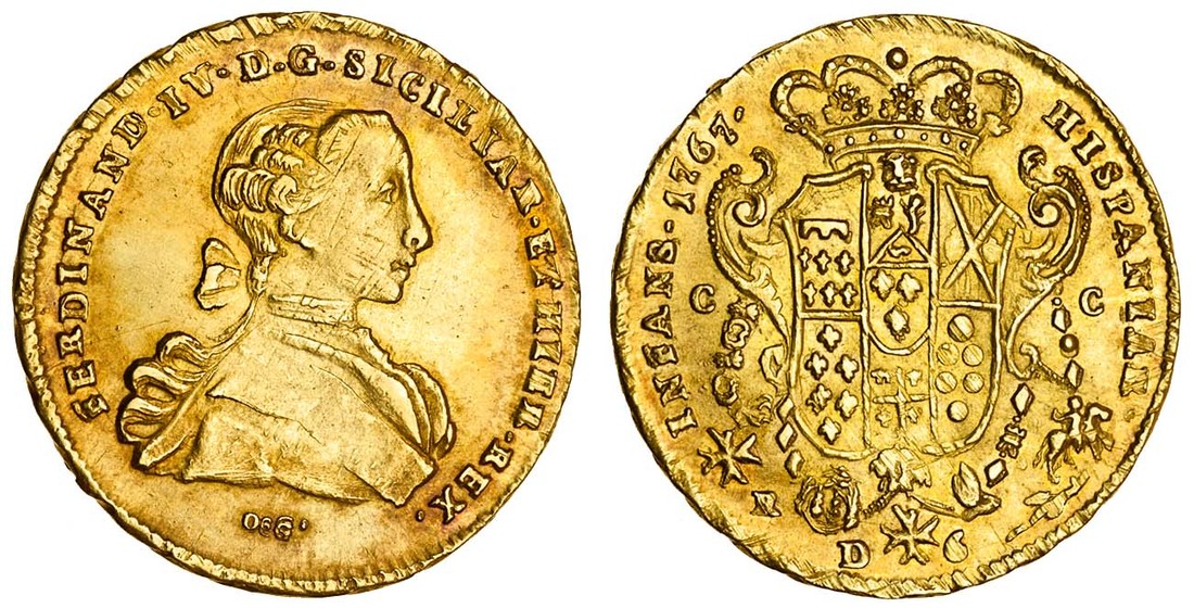 Italy, Naples and Sicily, Ferdinand IV (1759-1825), 6-Ducati, 1767, uniformed bust right, rev. crowned shield (F.846a; KM 75), adjustment marks, cleaned, good very fine