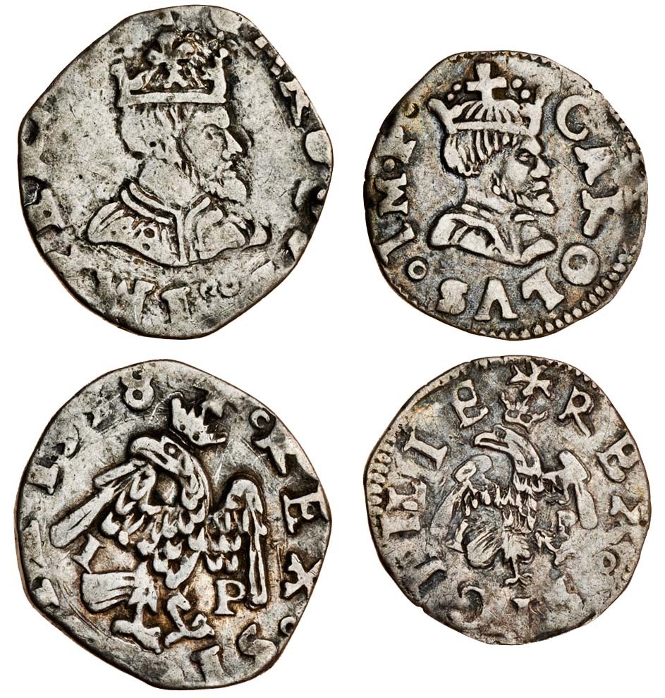 Italy, Sicily, Carlo V (1516-56), Tari, 1538n and Mezzo-Tari, no date, both bearded bust right, rev. eagle with i-p (MIR 298/1 and 305/2), good fine or better (2)