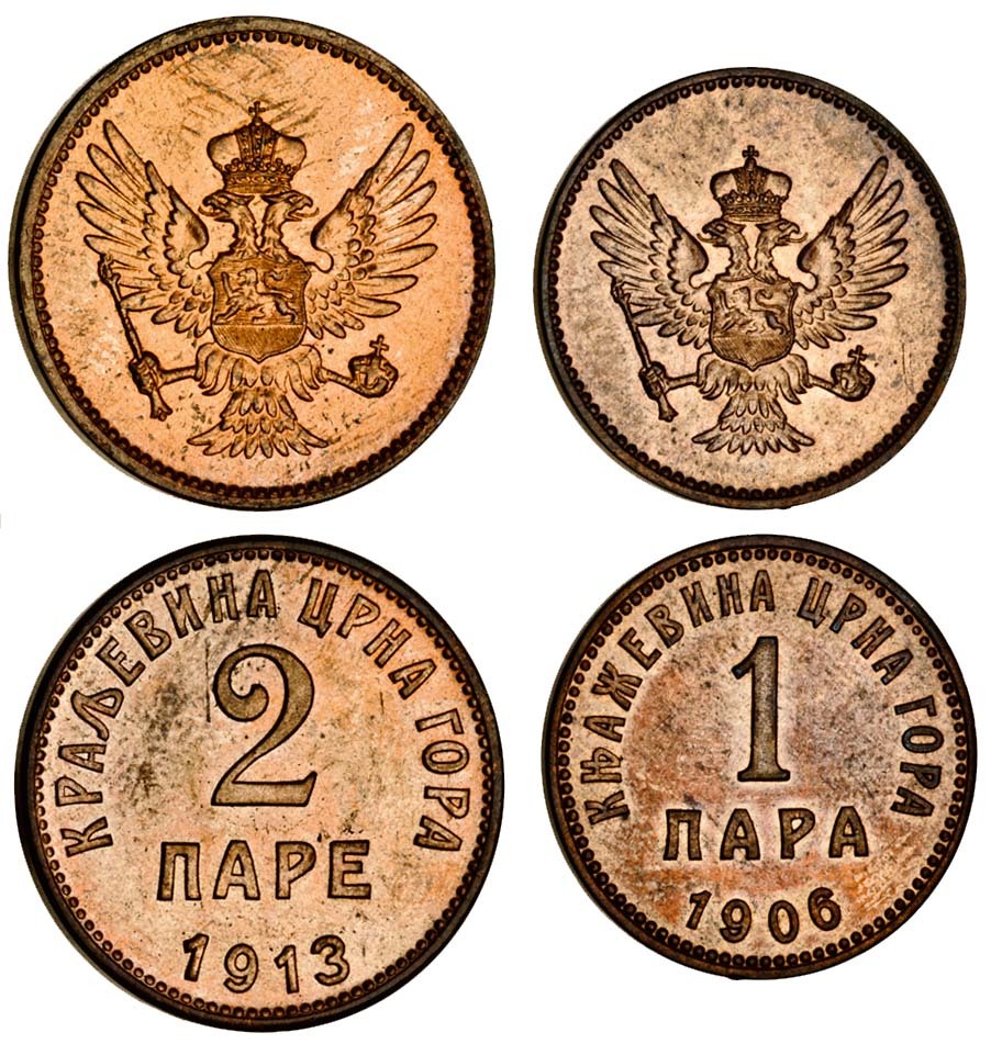 Montenegro, Nicholas I (1860-1918), 2-Para, 1913, and 1-Para, 1906, crowned eagle, rev. value (KM 17, 2), uncirculated, with full lustre, the 1-Para rare in this high grade (2)