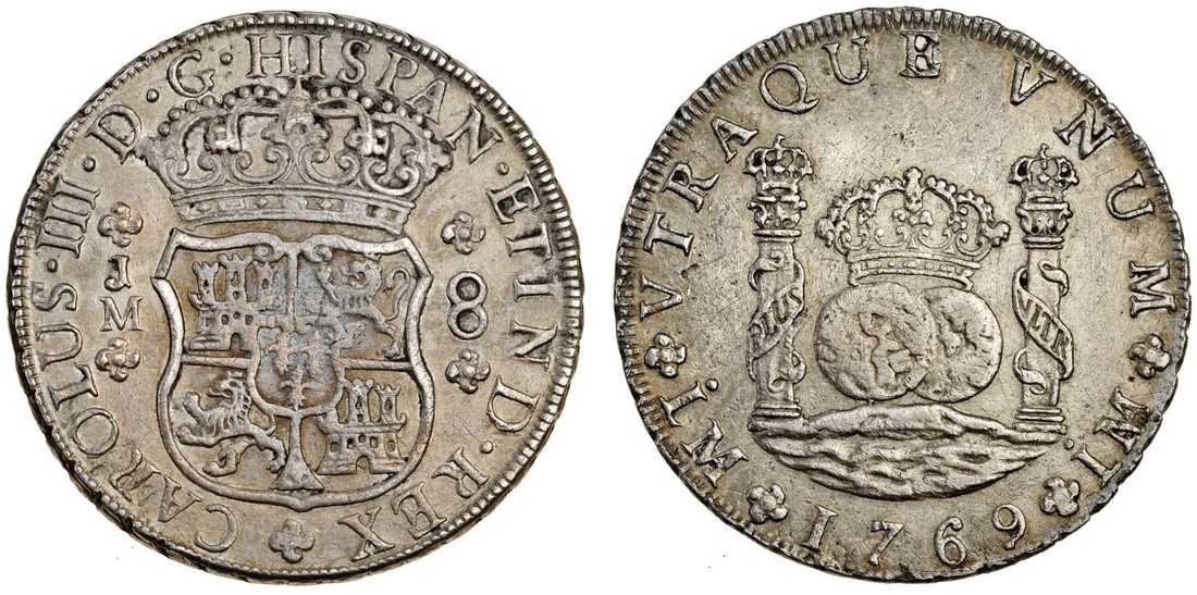 Peru, Charles III (1759-88), Lima, 8-Reales, 26.86g, 1769 JM, dots over both monograms (Cal.350; Cay.11966; KM.A64.1), cleaned, very fine