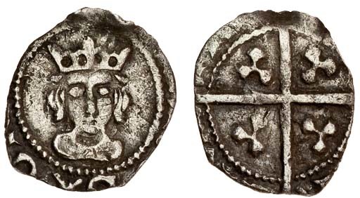 Richard III (1483-85), Halfpenny, 0.29g, London, m.m. boar's head, crowned bust facing, [ricard] di gr[a rex] , rev. long cross with trefoil of pellets in each quarter (Stewartby p.450; Withers 3a; N.1688; S.2170), flan slightly crimped at top of obverse, the flan average for this coinage, this a good example of the thin Withers 3a bust of Richard, good very fine for this and rare