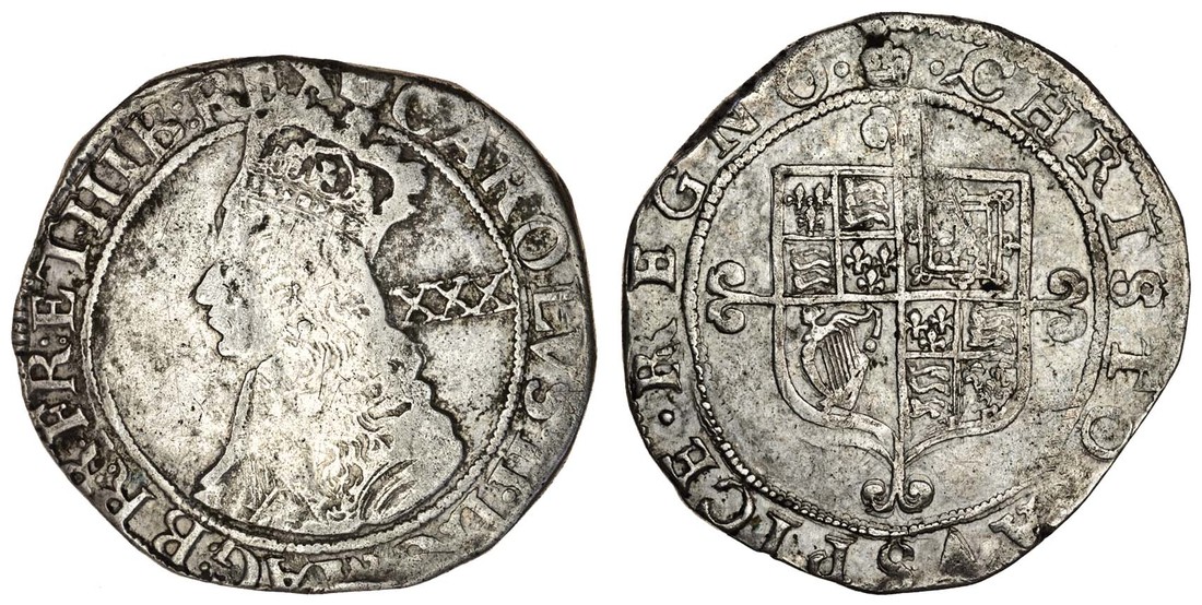 Charles II (1660-85), hammered coinage, 1660-62, third issue, Halfcrown, 12.23g, i.m. crown, crowned bust left, value xxx behind, rev. shield on cross fleury, inner circles (N.2761; S.3321), irregular edge, fine