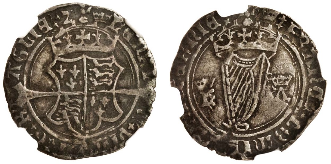 (x) Henry VIII (1509-47), First harp coinage, 1534-40, with Anne Boleyn, Groat, uncertain weight, m.m. crown, crowned shield over long cross fourchée, rev. crowned harp dividing crowned h and a (S.6472), old tone, generally very fine, slabbed by NGC and graded VF30