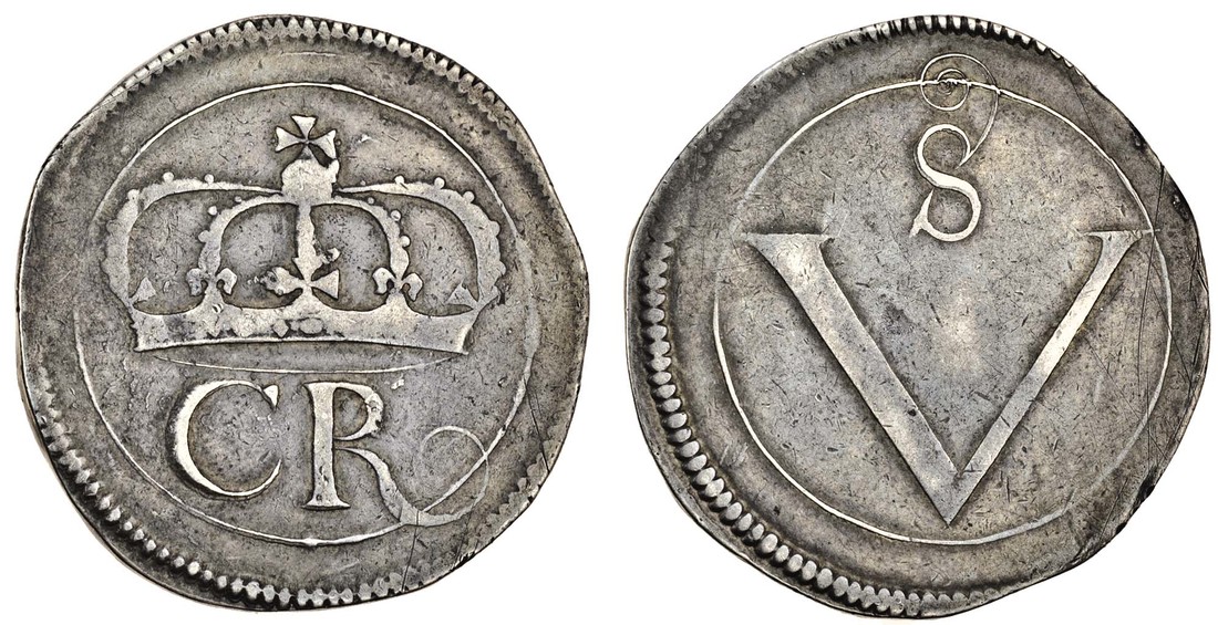 (x) Ireland, The Great Rebellion, issues of the Lords Justices 1642-29, 'Ormond Money' Crown, 29.96g, large crowned cr, rev. large v, s above (D&F 288; S.6544), neatly struck, a rare variety with ornamental letters, very fine, toned