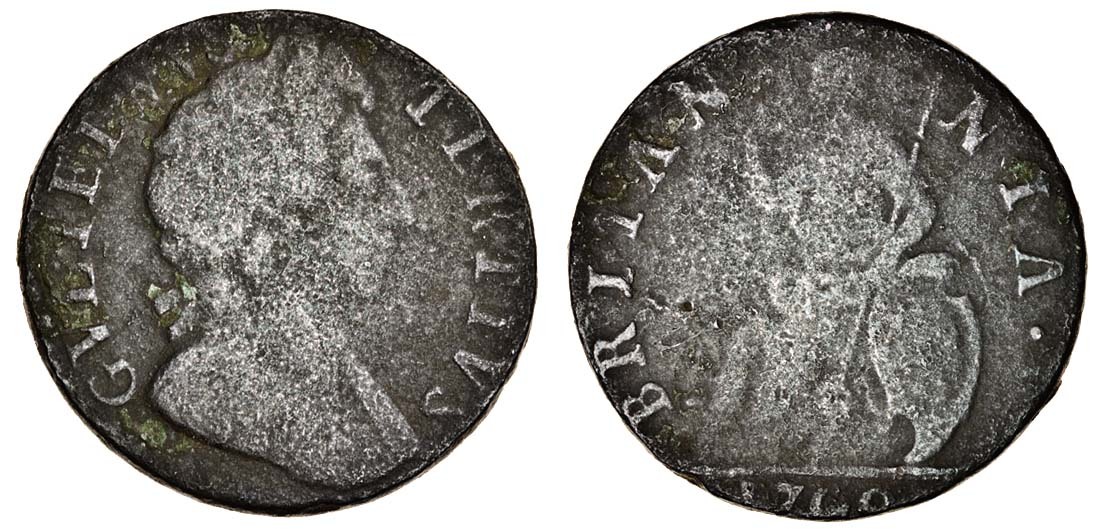 William III (1694-1702), Farthing, 1700, bust right, no stop after tertivs, rev. Britannia, unbarred As in britannia (Peck 671), fair, but very clear, very rare