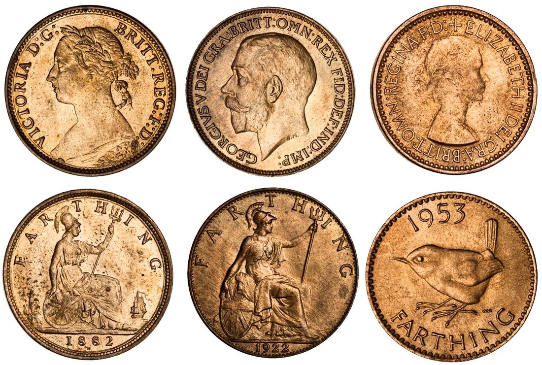 Victoria (1837-1901), Farthing, 1882 H, young bust left, broken f in f:d:, rev. Britannia (cf. Peck 1905), George V, Farthing, 1922, and Elizabeth II, Farthing, 1953, all uncirculated, with lustre (3)