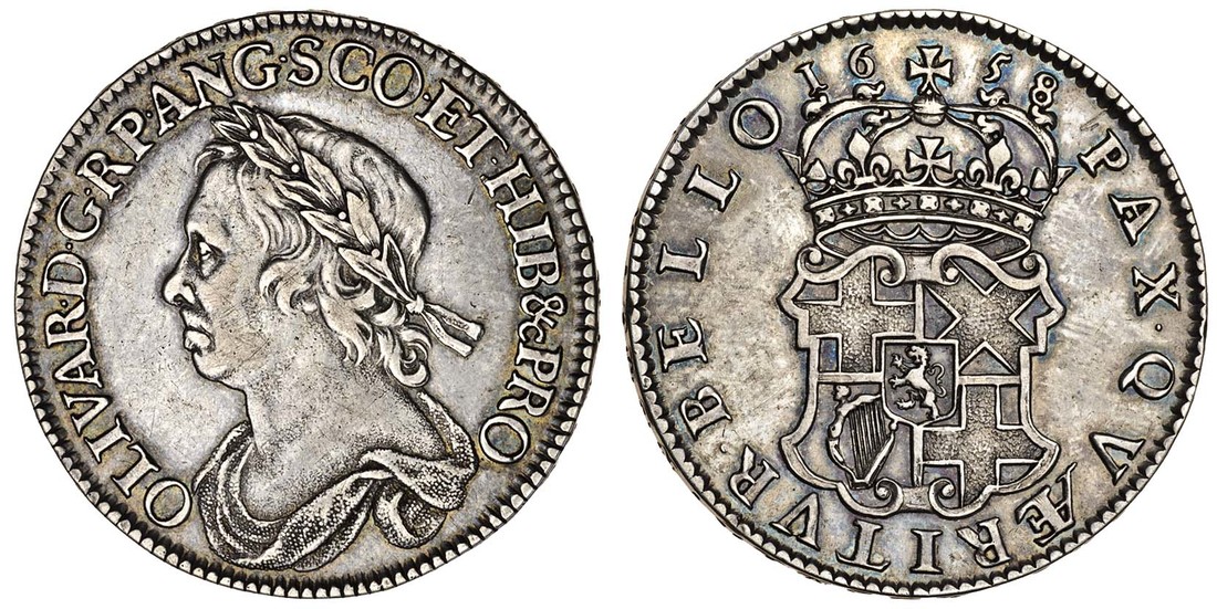 Cromwell, Halfcrown, 1658, laureate, draped bust left, rev. crowned shield (ESC 447; S.3227A), small scratch by p of pax, light scattered marks but very fine