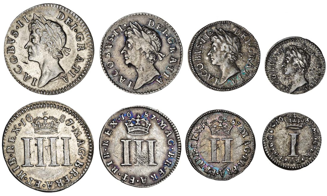 James II (1685-88), Maundy set, 1687 (ESC 2382; S.3418), the Fourpence 1687/6, some toned, generally about very fine to very fine (4)