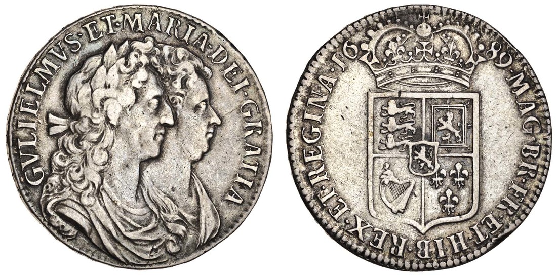 William and Mary (1688-94), Halfcrown, 1689 primo, conjoined busts right, rev. first crowned shield (ESC 503; S.3434), good fine
