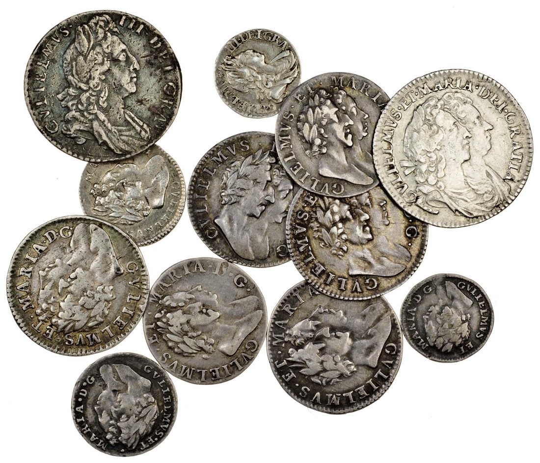 William and Mary (1688-94), Sixpence, 1693, Fourpence 1689 (4), Threepence, 1689 (2), Twopence (2), 1691, 1694, Penny, 1694, William III (1694-1702), Sixpence, 1697, Penny, 1700, very fine and better (12)