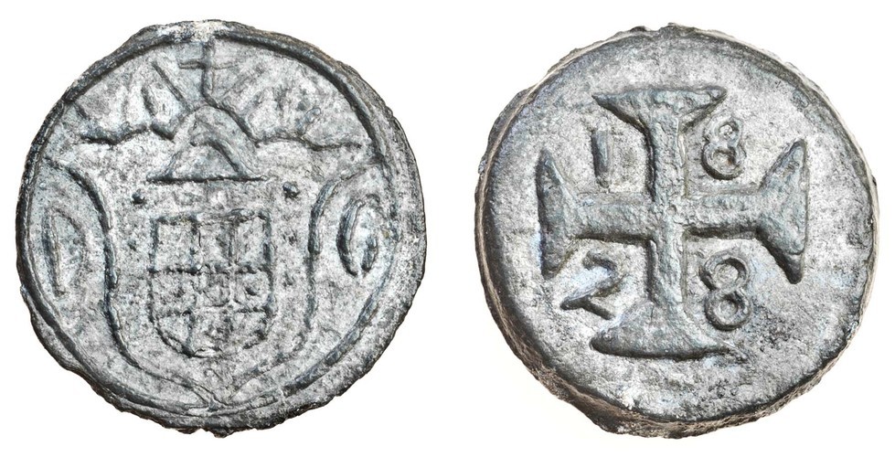(x) Portuguese India, Tin 20-Bazarucos, Diu, 1828, crowned arms between d - g, rev. Maltese cross with date between arms (G.06.03; KM.58), extremely fine, scarce