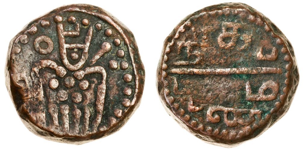 (x) Dutch India, Negapatnam (Coromandel Coast), AE 2-Stuivers, 55.22g, undated (1695), stylised figure of Kali, rev. Tamil legend naming mint (Scholten 1243; KM 29), about very fine