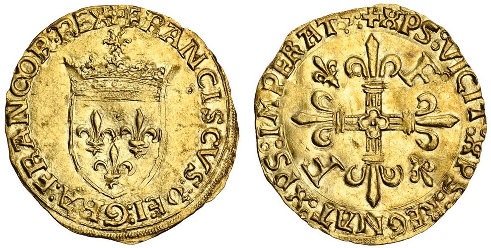 France, Francis I (1515-1547), Écu d'or au soleil, 3.39g, issue of 21 July 1519, Toulouse, crowned shield, radiant sun above, rev. cross fleury with lis and f in alternate angles (Dup.775; F.347), flan a little bowed and slightly irregular in parts, obverse shield lightly double-struck, this piece with smooth fields and extensive freshness, well struck and nearly extremely fine