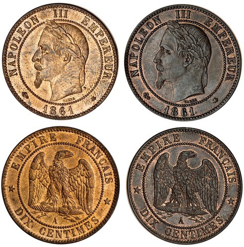 France, Napleon III (1852-70), AE 10-Centimes (2), 1861 A (KM. 798.1), good extremely fine to uncirculated, one with much original lustre (2)