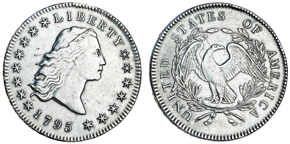 United States of America, Dollar, 1795, head of Liberty with flowing hair, rev. eagle in wreath (Bolender 5; H-5), edge bruising, cleaned, very fine